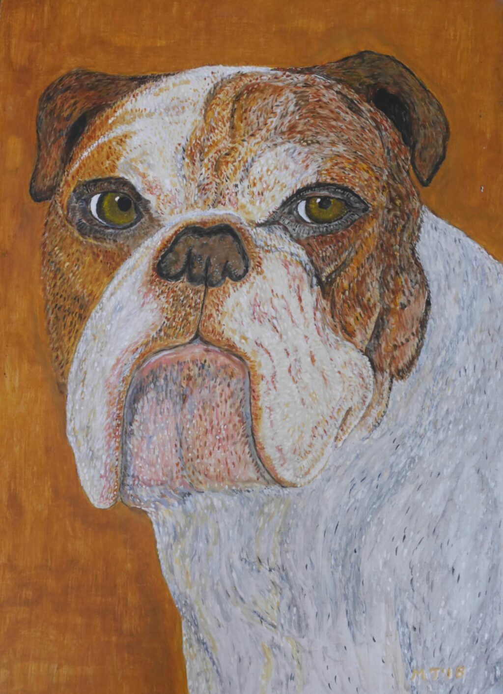 Schilderij van de kop van een bulldog