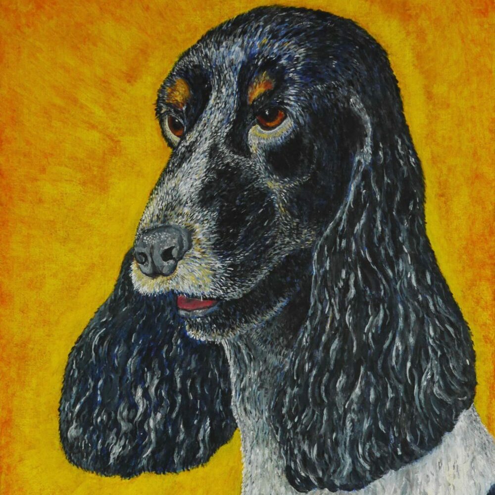 Schilderij van de kop van een Cocker Spaniel