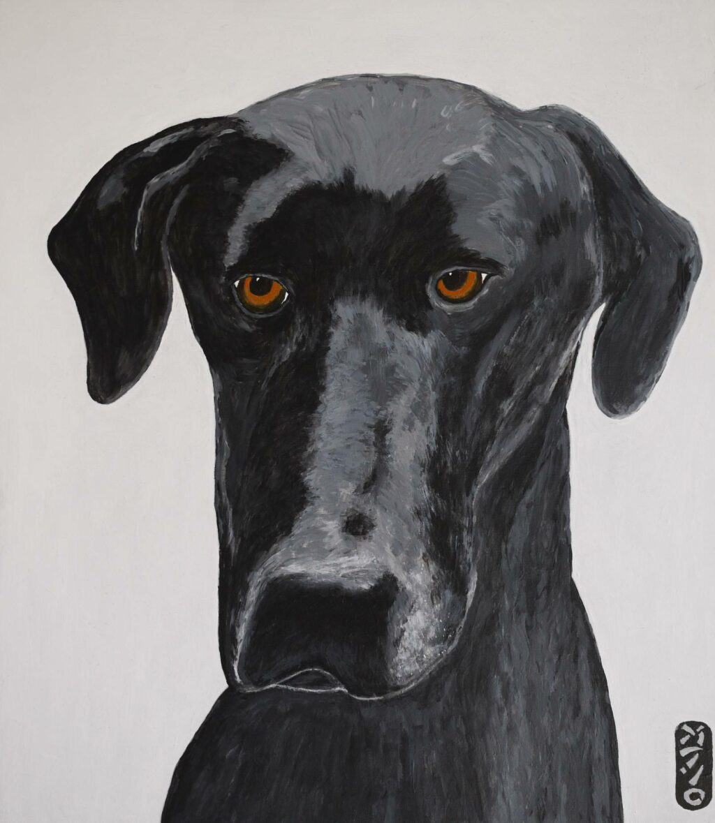 Schilderij van de kop van een zwarte hond